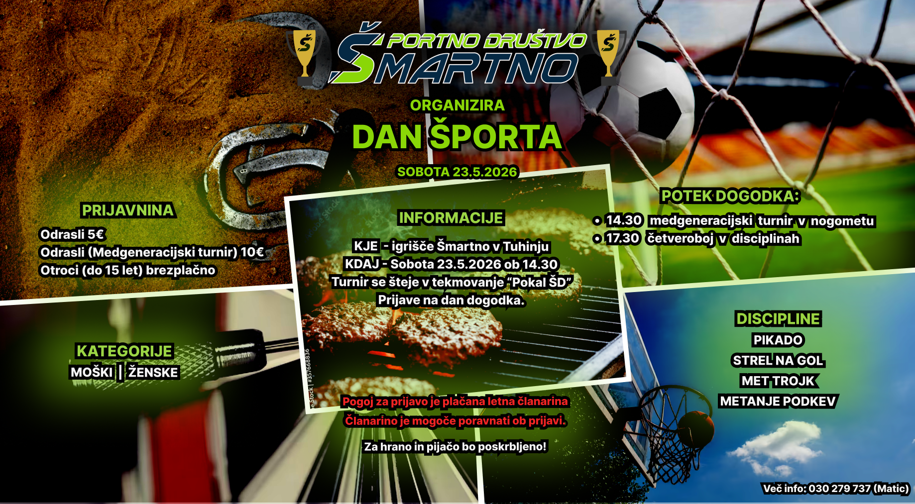 Rdeča nit dneva športa je celodnevno druženje članov našega športnega društva. Da pa vse le nebi bilo tako brez »stresa« pa bomo poskrbeli, da se bo skozi popoldne in večer veliko dogajalo.